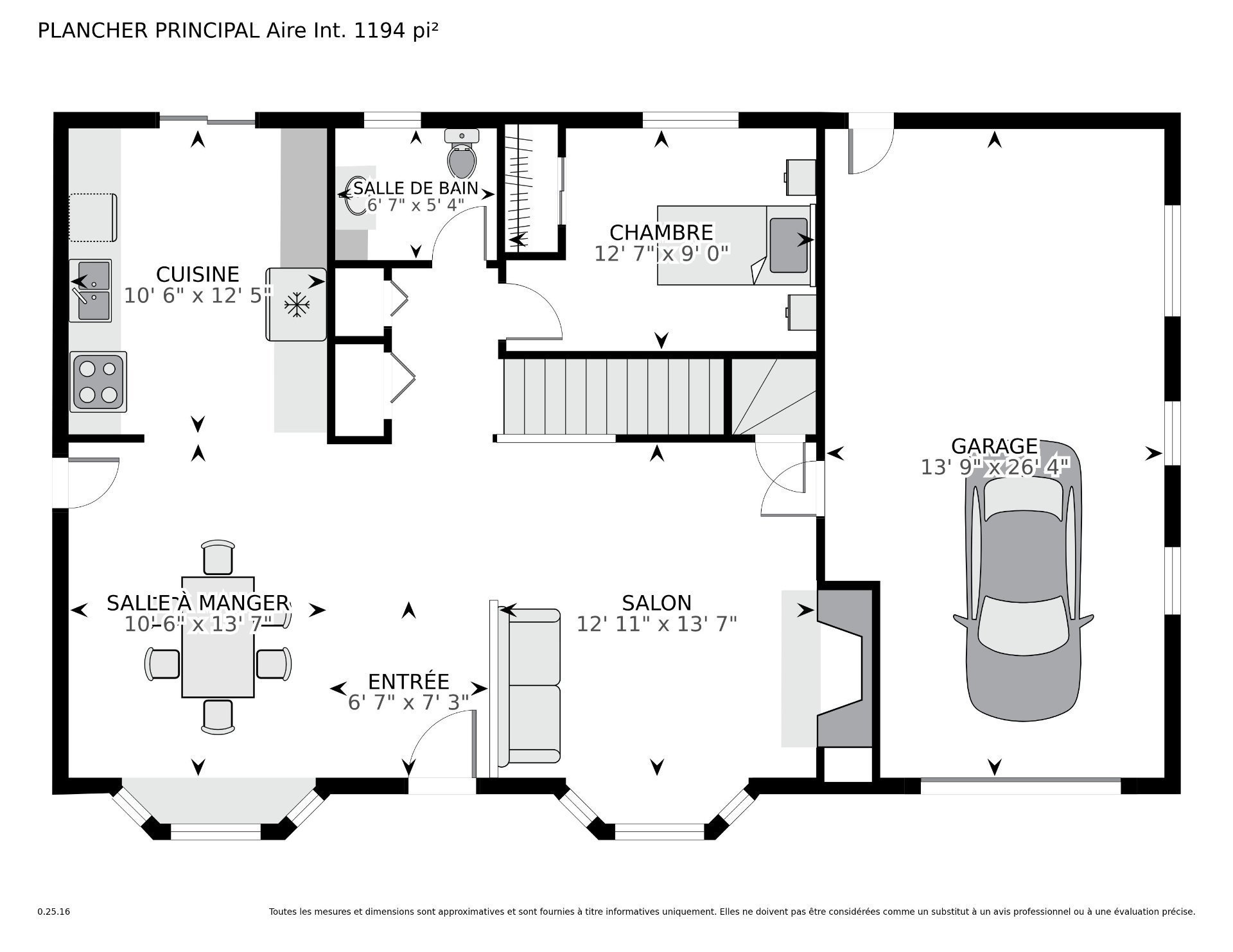 | Chambre à coucher | 12.7 x 8.11 P | Rez-de-chaussée | Bois |