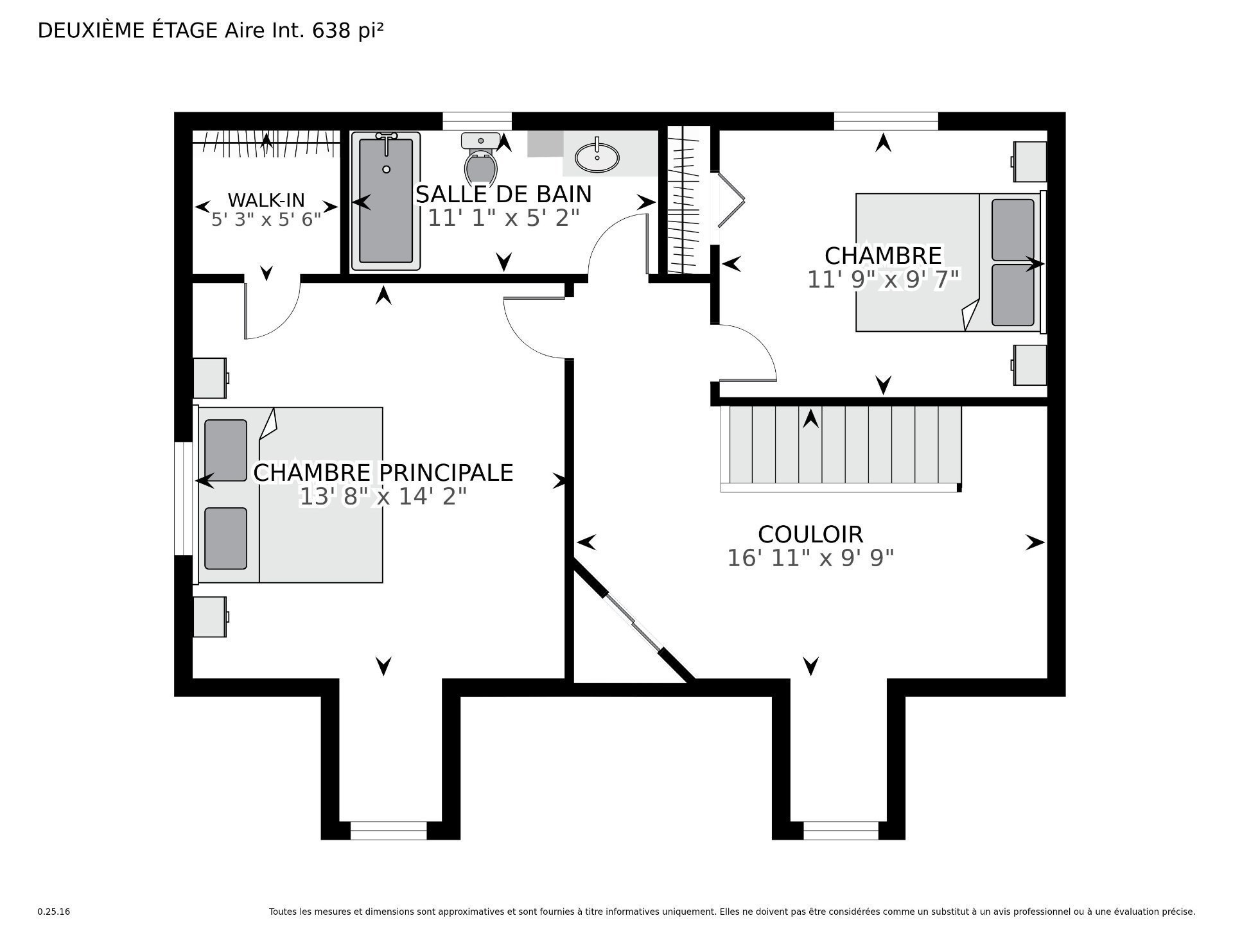 | Chambre à coucher principale | 19.1 x 13.3 P | 2ième étage | Parqueterie |