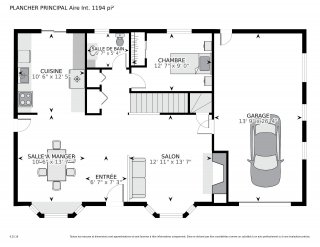 | Salle à manger | 17.4 x 12.5 P | Rez-de-chaussée | Bois |