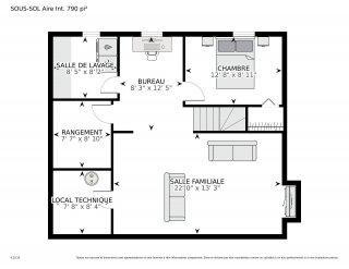 | Salle familiale | 22.3 x 12.1 P | Sous-sol | Couvre-sol souple |