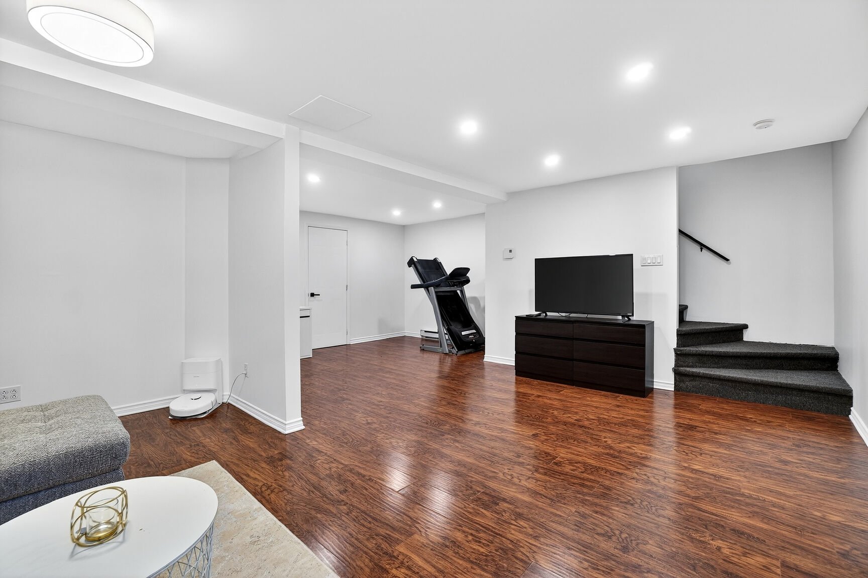 La grande salle familiale constitue un espace polyvalent pouvant servir de salle de jeux, cinéma maison, bureau ou espace détente. Les pièces bénéficient d'une belle luminosité naturelle, contribuant à l'ambiance agréable et invitante de la maison.