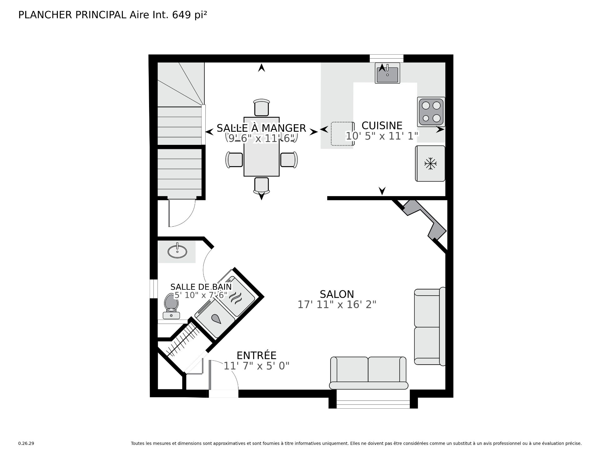 | Salle à manger | 9.6 x 11.6 P | Rez-de-chaussée | |
