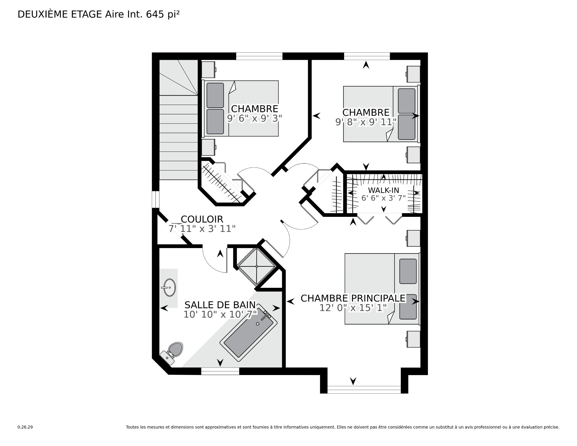 | Chambre à coucher | 9.8 x 9.11 P | 2ième étage | |